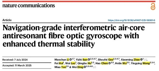 4月14日,中船集團(tuán)旗下七〇七所和暨南大學(xué)等構(gòu)建的深度合作研究團(tuán)隊(duì),在國(guó)際權(quán)威頂級(jí)期刊《Nature?Communications》發(fā)表了題為“Navigation-grade interferometric air-core anti-resonant fibre optic gyroscope with enhanced thermal stability”的最新研究成果,實(shí)現(xiàn)了空芯光纖陀螺領(lǐng)域的新突破。