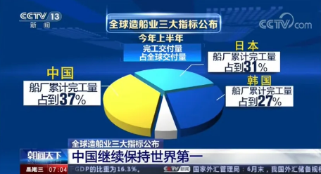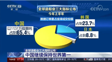 全球權威航運造船機構公布的最新數(shù)據(jù)顯示,今年上半年,全球造船業(yè)三大指標,中國再次領先,繼續(xù)保持世界第一的紀錄。