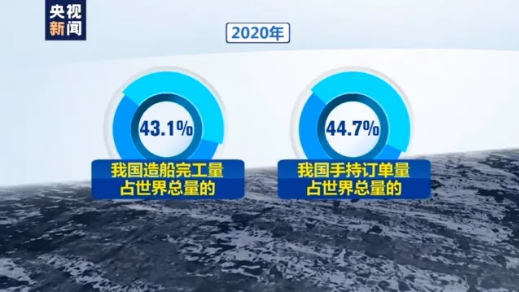 據(jù)統(tǒng)計,2020年,我國造船完工量和手持訂單量,分別占世界總量的43.1%和44.7%,繼續(xù)在國際市場份額中繼續(xù)領先。
