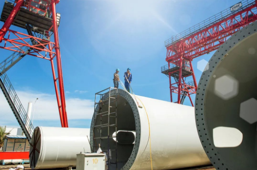 七月,在中國(guó)海裝大連莊河項(xiàng)目中,火熱的盛夏配上火熱的搶裝,運(yùn)維人員正在對(duì)24號(hào)機(jī)組做底段塔筒安裝前的準(zhǔn)備工作。