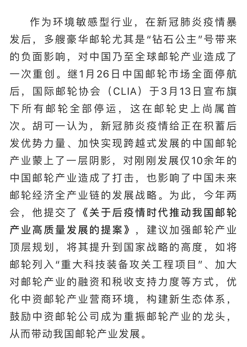 船舶看兩會| 全國政協(xié)委員胡可一:審視根本性問題,推動郵輪業(yè)高質(zhì)量發(fā)展