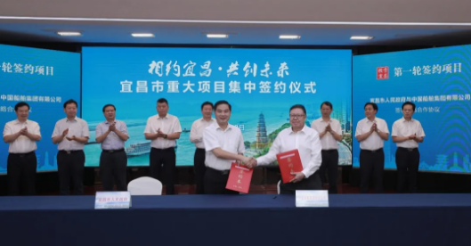 7月28日,中國(guó)船舶集團(tuán)有限公司黨組成員、副總經(jīng)理錢(qián)建平代表中國(guó)船舶集團(tuán)與宜昌市政府簽訂了《中國(guó)船舶(宜昌)海洋裝備科技園項(xiàng)目框架合作協(xié)議》。宜昌市委書(shū)記周霽、市長(zhǎng)張家勝參加簽約活動(dòng)。