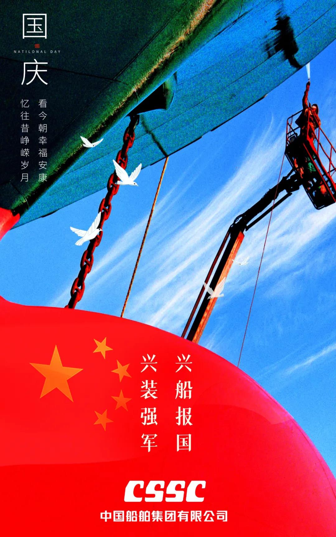 今天,我們迎來新中國72周年華誕。作為我國海軍裝備建設(shè)的主力軍,中國船舶大船集團(tuán)將不忘初心,牢記使命,堅(jiān)定貫徹海洋強(qiáng)國、制造強(qiáng)國、科技強(qiáng)國國家戰(zhàn)略,聚焦主責(zé)主業(yè)、聚力興裝強(qiáng)軍,為實(shí)現(xiàn)中華民族偉大復(fù)興的中國夢而不懈奮斗。