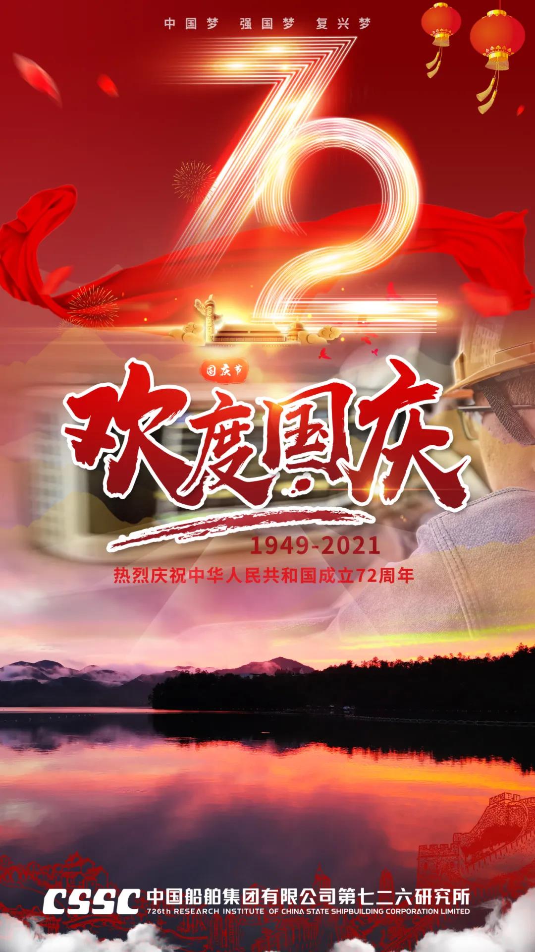 72年篳路藍(lán)縷,72年風(fēng)雨兼程,正值建黨百年之際,恰逢新中國72周年華誕,中國船舶七二六所為祖國獻(xiàn)上最真摯的祝福!祝福偉大祖國繁榮昌盛!七二六人將繼續(xù)用智慧和汗水譜寫水聲華章,用創(chuàng)新和拼搏開拓新時(shí)代新征程,為建設(shè)海洋強(qiáng)國貢獻(xiàn)磅礴力量!
