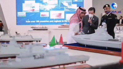 沙特王儲(chǔ)穆罕默德·本·薩勒曼參觀中國(guó)船舶展臺(tái)