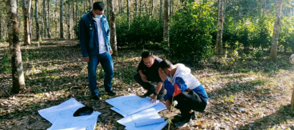 ▲馬翔(中)為集團(tuán)定點幫扶項目現(xiàn)場選址