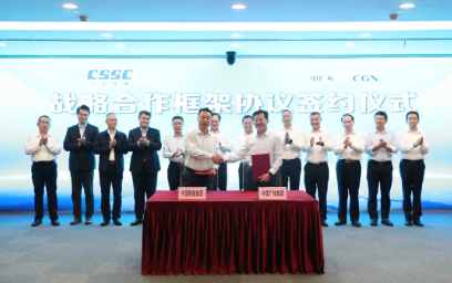 11月3日,中國(guó)船舶集團(tuán)有限公司與中國(guó)廣核集團(tuán)有限公司在上海簽訂戰(zhàn)略合作協(xié)議。中國(guó)船舶集團(tuán)黨組副書記、總經(jīng)理?xiàng)罱鸪桑袕V核黨委副書記、總經(jīng)理高立剛出席簽約儀式。中國(guó)船舶集團(tuán)黨組成員、副總經(jīng)理盛紀(jì)綱,中廣核黨委常委、副總經(jīng)理龐松濤分別代表雙方在協(xié)議上簽字。簽約前,雙方觀看了兩家企業(yè)宣傳片,并就進(jìn)一步加強(qiáng)溝通交流、深化多領(lǐng)域合作進(jìn)行了深入探討。