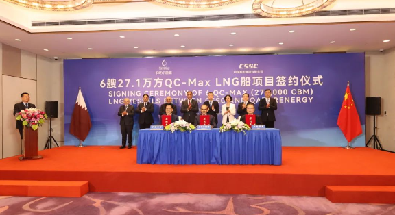 9月9日,三方新簽了6艘全球最大27.1萬立方米超大型LNG船訂單。至此,三方已累計(jì)簽訂24艘27.1萬立方米超大型LNG船、12艘17.4萬立方米大型LNG船,以載氣量計(jì),位居全球各船廠之首。卡塔爾能源事務(wù)國務(wù)大臣、卡塔爾能源總裁兼首席執(zhí)行官薩阿德·謝里達(dá)·阿爾卡比,上海市副市長陳杰,中國船舶集團(tuán)黨組成員、總會(huì)計(jì)師賈海英等出席簽約儀式。