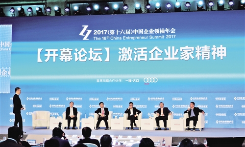 圖為“2017(第十六屆)中國企業(yè)領袖年會”開幕主題論壇現(xiàn)場。 記者 崔國強攝