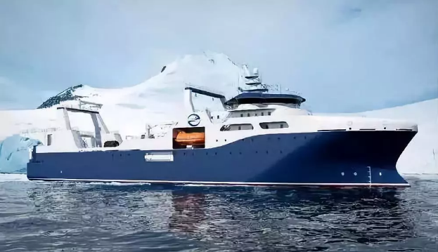 ????“深藍(lán)號(hào)”由黃埔文沖建造,七〇八所參與設(shè)計(jì),總長(zhǎng)約120米,型寬21.6米,設(shè)計(jì)吃水7.3米,設(shè)計(jì)航速15節(jié),主機(jī)功率8000 千瓦,載重噸約5000噸?!吧钏{(lán)號(hào)”是我國(guó)自主研制建造的第一艘漁業(yè)捕撈加工一體船,也是目前最大最先進(jìn)的漁業(yè)捕撈加工一體船,取得近200項(xiàng)知識(shí)產(chǎn)權(quán)保護(hù),實(shí)現(xiàn)了我國(guó)現(xiàn)代化漁業(yè)船舶裝備領(lǐng)域的重大突破,達(dá)到世界先進(jìn)水平;主要用于南大洋漁業(yè)捕撈,兼顧海洋科考功能,可滿足ICE-A冰區(qū)(冰厚度0.8米)及-25℃低溫環(huán)境的營(yíng)運(yùn)要求。