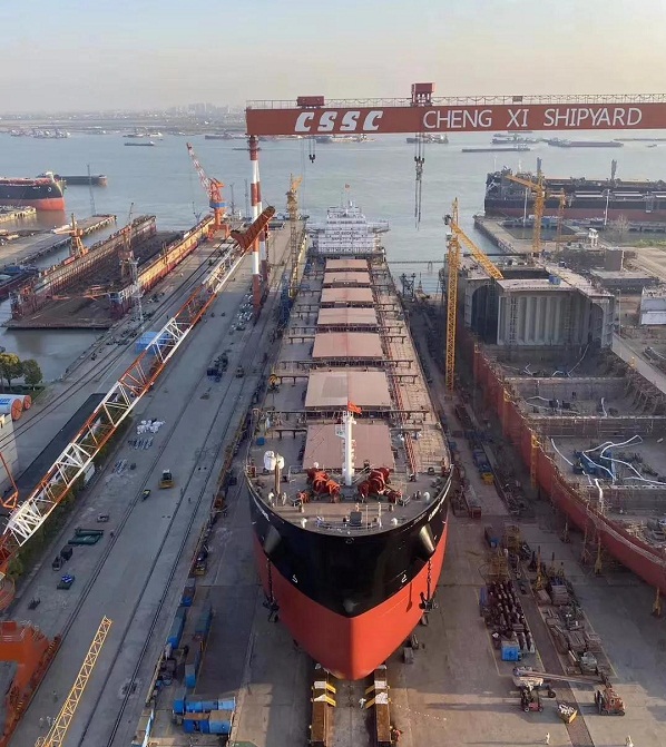 ????4月7日,中國(guó)船舶集團(tuán)旗下中船澄西為香港華光船務(wù)建造的42號(hào)8.2萬(wàn)噸散貨船,在中船澄西揚(yáng)州公司下水。該船下水整體完整性較好,船體工程、輪機(jī)工程、電氣工程等多項(xiàng)工程基本完工,為水下全船設(shè)備安裝調(diào)試打下了堅(jiān)實(shí)基礎(chǔ)。