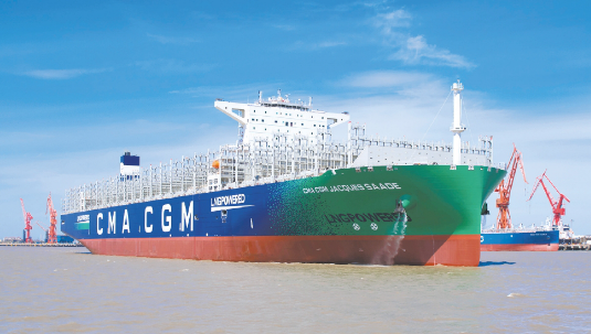 ——2020年9月,自主建造交付世界上首艘以LNG 為主要動力的噸位最大、集成世界最先進技術(shù)、環(huán)保性能最優(yōu)的23000TEU雙燃料動力集裝箱船“達飛雅克·薩德”號,并實現(xiàn)批量交付,進一步鞏固了滬東中華在超大型集裝箱船建造領(lǐng)域的行業(yè)領(lǐng)軍地位。這艘被譽為海上“綠巨人”的雙燃料動力集裝箱船,備受業(yè)界廣泛關(guān)注,她的成功建成交付是我國船舶工業(yè)高質(zhì)量發(fā)展取得的重要成果,彰顯了滬東中華雄厚的建造實力,也標(biāo)志著中國船舶集團在世界大型集裝箱船領(lǐng)域成功實現(xiàn)從跟隨到引領(lǐng)。