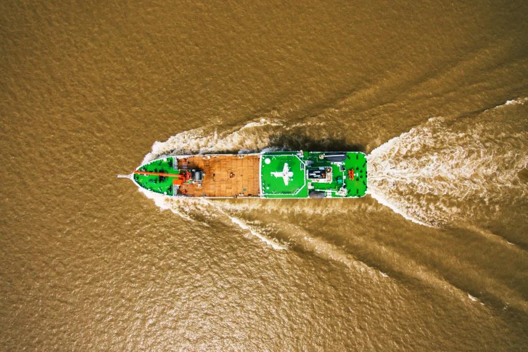 伶仃洋上碧波蕩漾,中??蜐L船2號船一騎絕塵。順利完成試航節(jié)點的她宛如運動員沖刺終點的紅飄帶,帶著金秋收獲的喜悅和“大干120天”的沖勁奔赴遠(yuǎn)方。