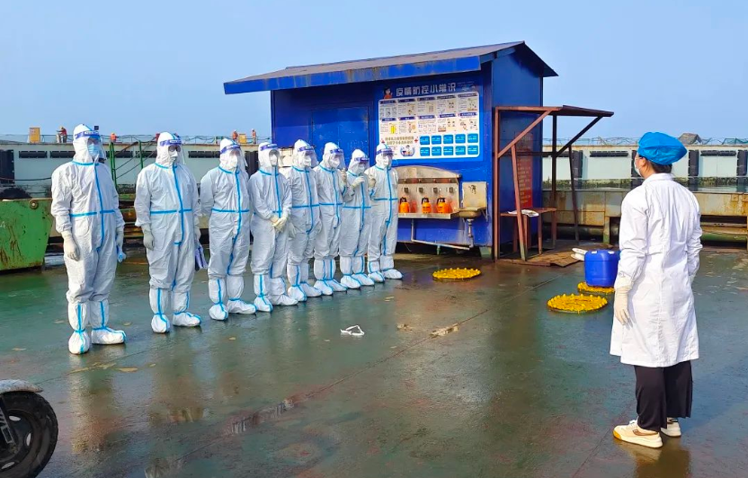 在每一艘船舶即將駛向交付目的地時,中船廣西防疫辦專門組織專業(yè)的醫(yī)護(hù)人員對參與送船的員工進(jìn)行防護(hù)培訓(xùn),并開展應(yīng)急演練,同時要求船舶靠岸時統(tǒng)一穿著防護(hù)服,無指令不得上岸。此外,該公司還安排專車對送船員工進(jìn)行點對點接送,杜絕一切與外界接觸的可能。