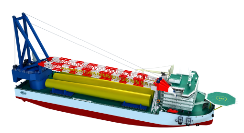 該船船長(zhǎng)186米,寬48米,型深16米,滿載排水量約90000余噸。起重機(jī)采用單舷側(cè)布置設(shè)計(jì),起吊高度可達(dá)主甲板以上145米,相當(dāng)于50層摩天大廈。還配備有DP2級(jí)動(dòng)力定位系統(tǒng),可實(shí)現(xiàn)深遠(yuǎn)??焖?、精確定位。能夠在海上風(fēng)電場(chǎng)進(jìn)行各項(xiàng)風(fēng)電工程作業(yè),主要包括10兆瓦及以下海上風(fēng)機(jī)的基座、支撐塔架、機(jī)艙及葉片的吊裝和風(fēng)機(jī)基礎(chǔ)等施工作業(yè),以及其他海上吊裝或支持作業(yè)。