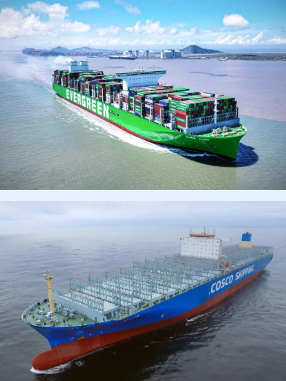 該船總長399.99米,型寬61.5米,型深33.2米,甲板面積相當(dāng)于近4個標(biāo)準(zhǔn)足球場,最大堆箱層數(shù)可達(dá)25層,相當(dāng)于22層樓的高度,可承載24萬多噸貨物,一次可裝載創(chuàng)紀(jì)錄的24116只標(biāo)準(zhǔn)集裝箱,是目前全球裝箱量最大的集裝箱船。