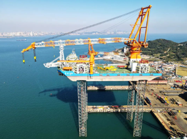 11月16日,中國船舶武漢船機總包建造的我國最新一代自升式海上風電安裝平臺——“華西1600” 1600噸自升式海上風電安裝平臺在青島成功交付。