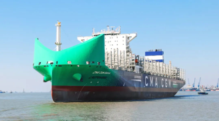 12月7日,由中國船舶集團有限公司旗下滬東中華造船(集團)有限公司聯(lián)合中國船舶工業(yè)貿(mào)易有限公司為法國達(dá)飛集團建造的13000TEU液化天然氣(LNG)雙燃料動力大型集裝箱船系列首制船“CMA CGM BAHIA”號,在中船長興造船基地命名交付。這是繼全球首創(chuàng)LNG雙燃料動力23000TEU超大型集裝箱船,滬東中華完工交付的又一款清潔能源集裝箱船,持續(xù)鞏固了其在大型、超大型雙燃料動力集裝箱船建造領(lǐng)域領(lǐng)軍企業(yè)的地位。
