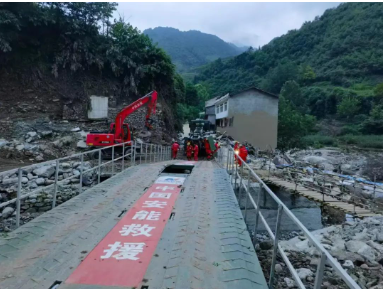 四川省公路交通應(yīng)急裝備物資儲(chǔ)備中心在現(xiàn)場(chǎng)道路損毀處架設(shè)了一座21米應(yīng)急機(jī)械化橋,有效保障救援人員和重型設(shè)備通行。架設(shè)前,中船應(yīng)急和四川省公路交通應(yīng)急裝備物資儲(chǔ)備中心進(jìn)行了工作對(duì)接并提供技術(shù)支持。