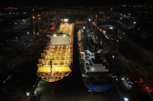 本次出塢的整船是江南造船為新加坡太平船務(wù)建造的14000TEU LNG雙燃料集裝箱船系列船第二艘;起浮的一艘整船是17.5萬立方米大型LNG運(yùn)輸船系列船第二艘,兩艘半船分別是為新加坡太平船務(wù)建造的14000TEU LNG雙燃料集裝箱船系列船第三艘的艏、艉半船和第四艘的燃料艙環(huán)段。