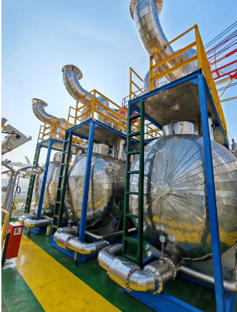 今年5月,七〇四所項(xiàng)目團(tuán)隊(duì)陸續(xù)完成了除氧撬塊、超濾撬塊、反滲透撬塊、換熱撬塊等設(shè)備的研制交付,隨即轉(zhuǎn)入現(xiàn)場(chǎng)安裝調(diào)試。面對(duì)設(shè)備安裝和海上試航中遇到的問(wèn)題,團(tuán)隊(duì)成員群策群力、攻堅(jiān)克難,展現(xiàn)了專業(yè)、職業(yè)和敬業(yè)的精神,為“熱采一號(hào)”的成功交付貢獻(xiàn)了中國(guó)船舶人的擔(dān)當(dāng)和力量,獲得了船東的高度贊揚(yáng)。