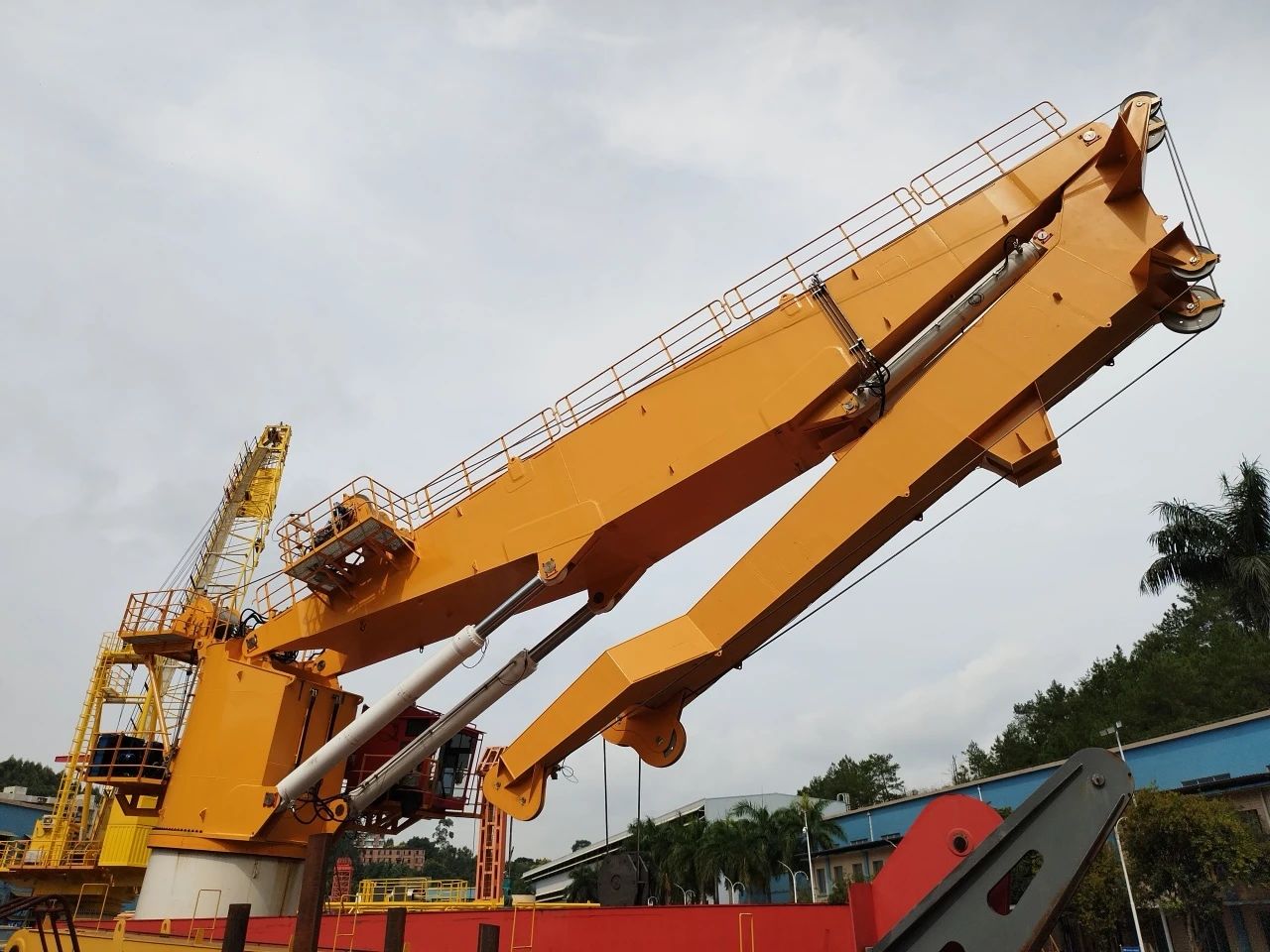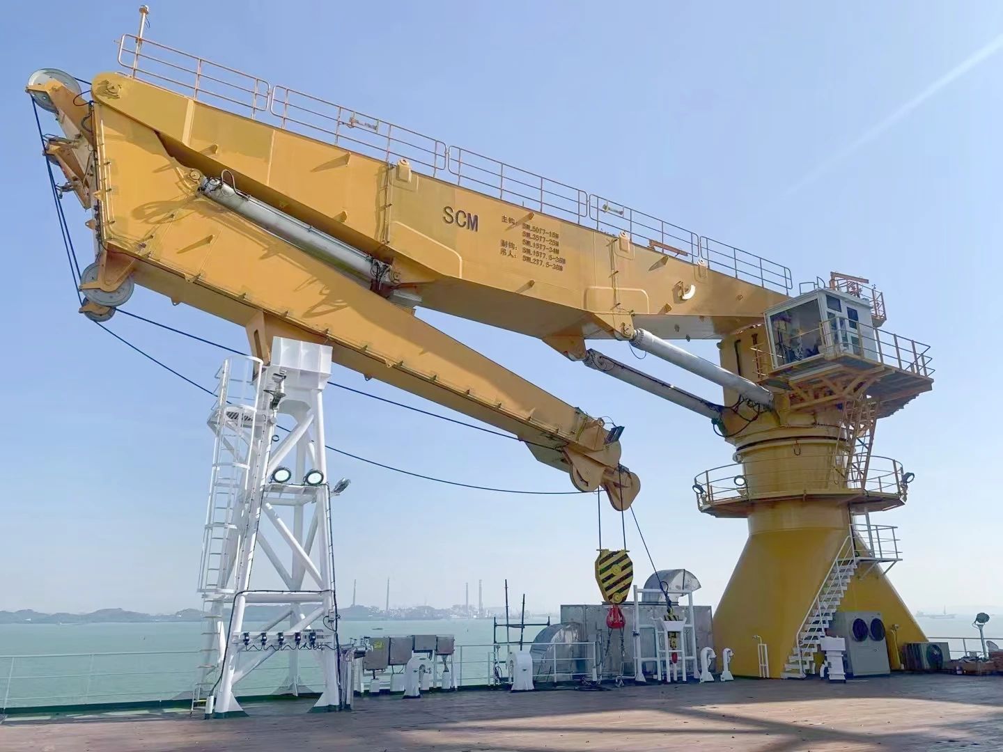 該起重機(jī)相較于傳統(tǒng)海工起重機(jī)大有不同,它對標(biāo)國際一流海工起重裝備,有更為嚴(yán)格的行業(yè)標(biāo)準(zhǔn)及規(guī)范,更多元的功能需求。該起重機(jī)在現(xiàn)有的海工吊基礎(chǔ)上增加了主動安全防護(hù)(AOPS)、智能化安全防護(hù)、油缸泄漏檢測等多種功能,這些功能均是華南船機(jī)首次嘗試設(shè)計(jì),其創(chuàng)新性與難度不言而喻。
