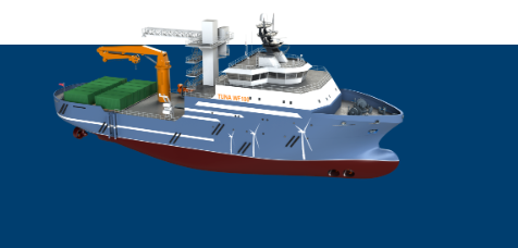 在海上風電運維船舶中,運維效率和運維能力更高的專業(yè)運維母船近年來在國外發(fā)展較快,國內(nèi)市場也開始布局設計建造。上船院開發(fā)的TUNA WF60/100型海上風電運維母船已形成完整的設計方案,適合快速投入建造。其船型具備功能強、效率高、倉庫容量大、人員安全舒適、拓展能力強、更符合國內(nèi)風場需求等優(yōu)點。