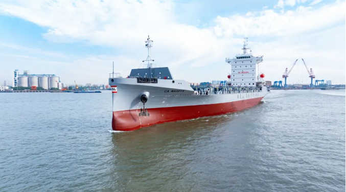 近日,由上船院設(shè)計,武昌造船為CA SHIPPING建造的1100TEU集裝箱船3號船提前交付。