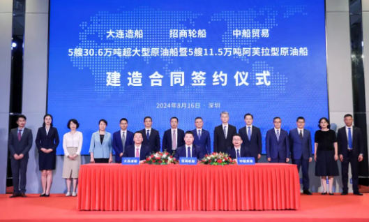 近日,中國船舶集團(tuán)旗下大連造船聯(lián)合中船貿(mào)易與招商輪船簽署5艘30.6萬噸原油船、5艘11.5萬噸原油船建造合同。