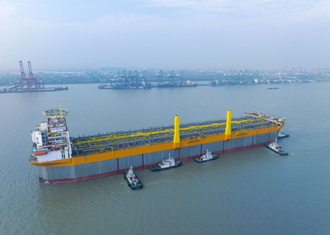 11月14日,由中國船舶集團(tuán)旗下外高橋造船為荷蘭SBM OFFSHORE公司建造的第五艘世界獨(dú)創(chuàng)230萬桶通用型海上浮式生產(chǎn)儲油輪(FPSO)“捷豹”號簽字交付。