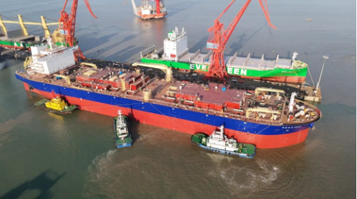 同日,其姐妹船進(jìn)塢搭載