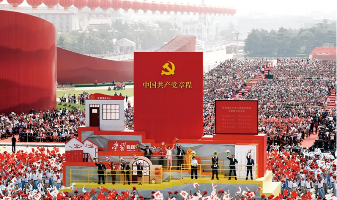 ▲2019年10月1日上午,慶祝中華人民共和國(guó)成立70周年大會(huì)在北京天安門廣場(chǎng)隆重舉行。這是群眾游行中的“從嚴(yán)治黨”方陣。新華社記者 蘭紅光/攝