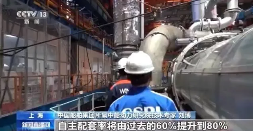 中國船舶集團旗下中船動力研究院技術(shù)專家 劉博:這臺CX40DF將匹配自主研制的增壓器、電控系統(tǒng)、油霧探測器,自主配套率將由過去的60%提升至80%。