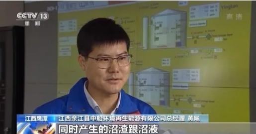 江西余江縣中船環(huán)境再生能源有限公司總經(jīng)理 黃飚:沼氣提純得到天然氣,實現(xiàn)資源化,產(chǎn)生的沼渣跟沼液,我們加工制備有機肥用于作物生長。
