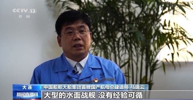 中國船舶大船集團首艘國產航母總建造師馬瑞云:第一次生產這種超過300多米長的大型的水面戰(zhàn)艦,沒有經(jīng)驗可循。