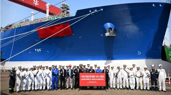17.4萬(wàn)立方米LNG運(yùn)輸船“遠(yuǎn)海奮進(jìn)”號(hào)(Ocean Inspiration)在滬東中華新廠(chǎng)區(qū)正式命名。