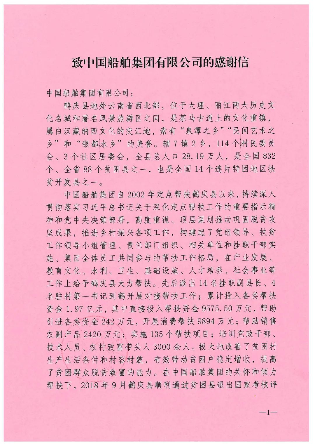 春節(jié)前夕,中國(guó)船舶集團(tuán)陸續(xù)收到云南省委省政府、文山州委州政府、鶴慶縣委縣政府、勐臘縣政府發(fā)來的感謝信,對(duì)集團(tuán)公司長(zhǎng)期以來給予鶴慶縣、勐臘縣、丘北縣的傾力幫扶表示衷心感謝和崇高敬意。